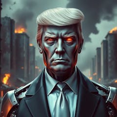 Trump's robotic features seemed to soften, and he extended his hand towards her. "Because I'm the only chance you've got," he said, his tone surprisingly gentle. "The world is a dangerous place now, and I'm the only one who can protect you."